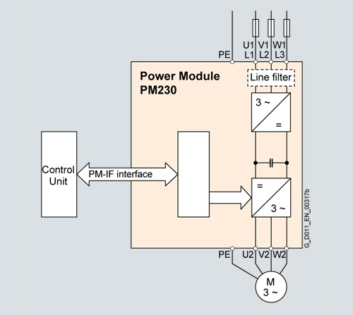 SINAMICS G120P Power Module PM230 tích hợp lọc Class A mức độ bảo vệ IP20 380-480 V 3 AC +10/-10% 47-63 Hz Công suất: 5.50kW với 150% quá tải cho 3s, 110% quá tải cho 57s,100% 240 s nhiệt độ môi trường 0 đến +40 °C